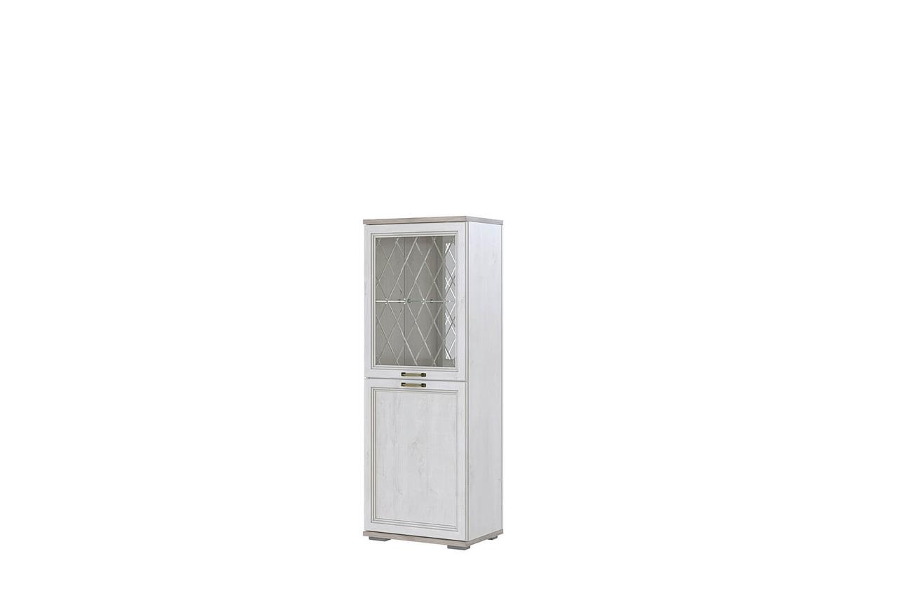 Светлый цвет фасадов (Сосна Санторини) оттеняет эксклюзивная рамка с бронзовой патиной, что только подчеркивает аристократичность этой мебели.