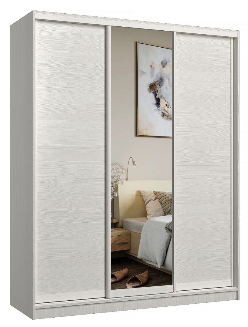 Стандартная глубина шкафа в 60 см позволяет разместить одежду на плечиках без помех для открытия раздвижных дверей, а полки создают вместительные ниши для крупных вещей, таких как постельное бельё, пледы, одеяла и подушки.